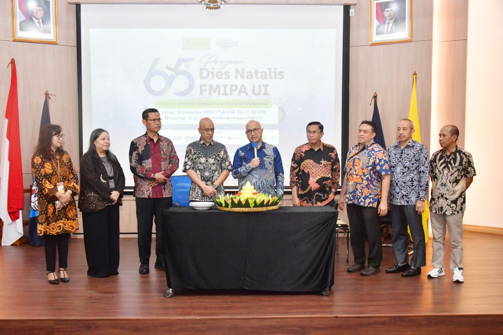 Fakultas Matematika dan Ilmu Pengetahuan Alam Universitas Indonesia (FMIPA UI) merayakan Dies Natalis ke-65 dengan mengusung tema “Science Reborn: Unggul & Impactful untuk Indonesia”. Tema ini mencerminkan komitmen FMIPA UI untuk menjadikan riset dasar sebagai penggerak utama solusi bangsa melalui kolaborasi lintas fakultas dan disiplin ilmu di Universitas Indonesia. Perayaan digelar pada Jumat, 19 Desember 2025, di Aula Prof. Dr. Ir. Soemantri Brodjonegoro, Depok, menjelang hari jadi FMIPA UI yang sesungguhnya jatuh pada 21 Desember 2025.