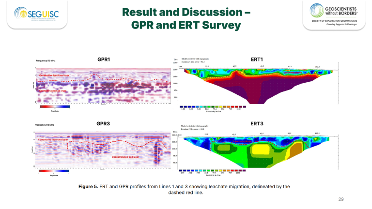Hasil pemetaan menunjukkan adanya indikasi kontaminasi pada kedalaman 6 hingga 25 meter, memperlihatkan pola pergerakan polutan dari area TPA menuju kawasan permukiman.