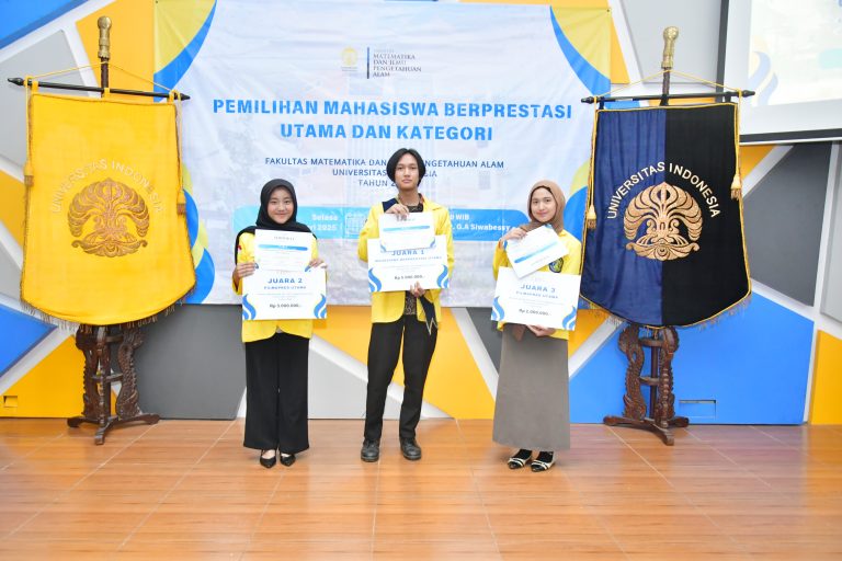 Setelah melalui rangkaian seleksi ketat, berikut adalah mahasiswa yang berhasil meraih gelar Mahasiswa Berprestasi FMIPA UI 2025: