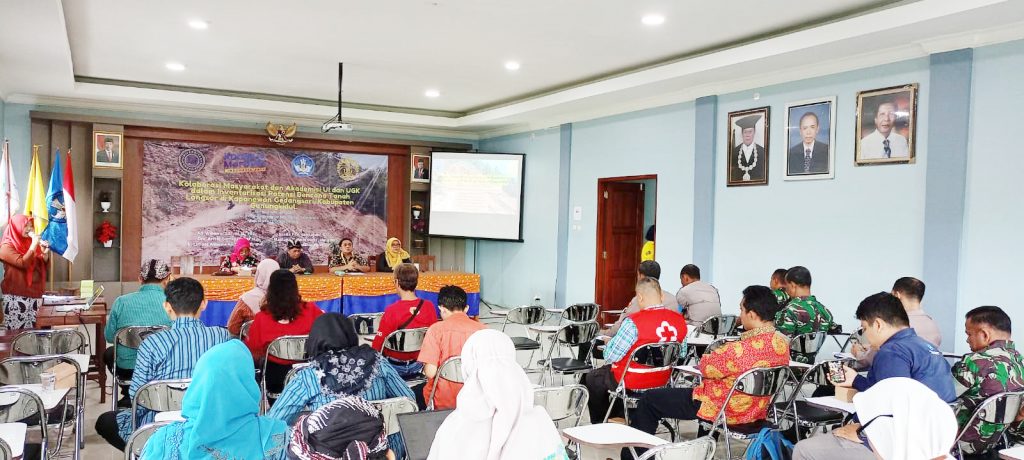 Fakultas Matematika dan Ilmu Pengetahuan Alam Universitas Indonesia (FMIPA UI) melalui Departemen Geografi, berkolaborasi dengan Universitas Gunung Kidul (UGK) melaksanakan kegiatan pengabdian masyarakat dengan melakukan sosialisasi hasil “Inventarisasi Potensi Bencana Alam Tanah Longsor di Kapanewon Gedangsari Kabupaten Gunungkidul”, pada Kamis (1/2/2024), di Aula Prof. Koesnadi Hardjosumantri, Kampus 2 Universitas Gunung Kidul.